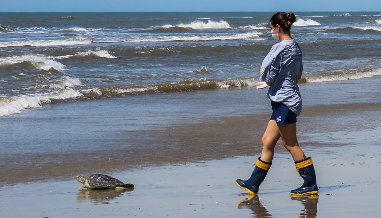 A equipe do Centro de Recuperação de Animais Marinhos (Cram-FURG) realizou a soltura de uma tartaruga-oliva (Lepidochelys olivacea) na manhã de 6 de fevereiro.