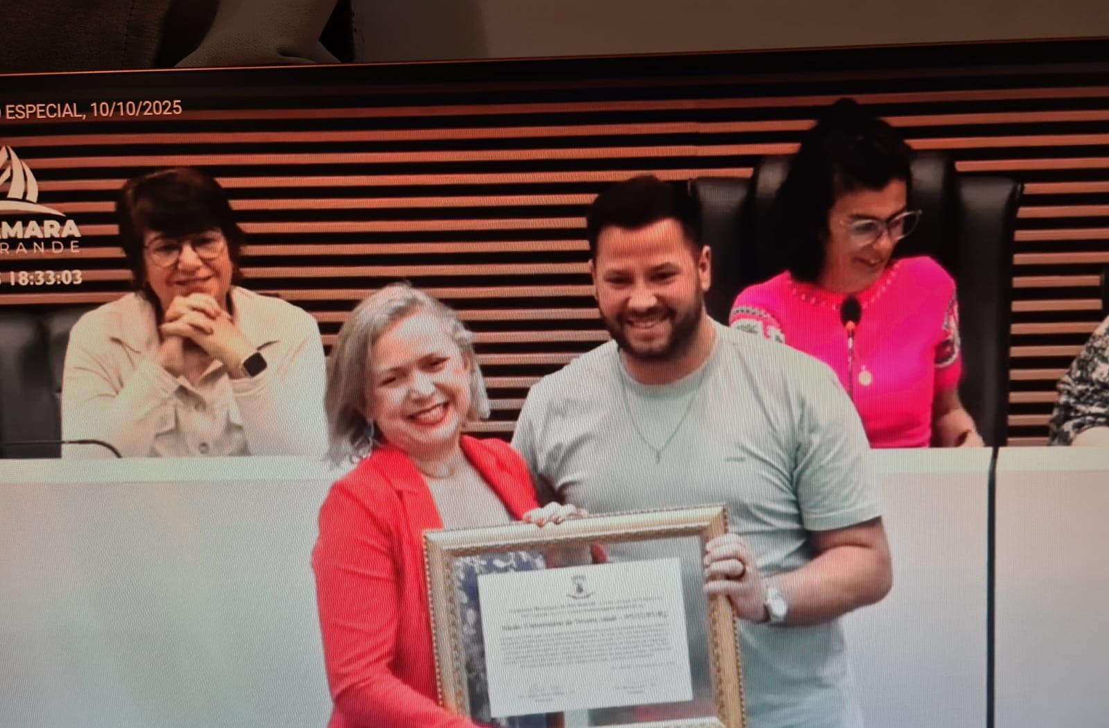 “A Câmara Municipal do Rio Grande, a mais antiga do Estado do Rio Grande do Sul, presta homenagem especial ao Núcleo Universitário da Terceira Idade - NUTI/FURG. Fundado em 1994, pela sua trajetória dedicada à valorização da pessoa idosa por meio da educação, da pesquisa e da extensão universitária. Ao longo de mais de três décadas, o NUTI consolidou-se como referência regional na promoção do envelhecimento ativo, no incentivo à aprendizagem ao longo da vida e na construção de espaços de integração entre gerações. Sua atuação reafirma o compromisso da Universidade Federal do Rio Grande com a inclusão social, a dignidade e os direitos da população idosa, contribuindo de forma decisiva para uma cidade mais justa, solidária e participativa. Rio Grande, 10 de outubro de 2025”