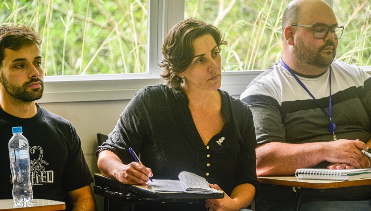Conforme explicam as professoras Daniele Acosta (Escola de Enfermagem) e Ceres Arejano (Instituto de Psicologia), que coordenam o curso da FURG, as práticas dos residentes acontecem na UBSF Caic e na UBSF São Miguel II. No encontro de quinta, além do coletivo que sempre se reúne nesse espaço de formação, estavam as professoras da direção do Instituto de Educação, que hoje abriga o curso de Residência da FURG.