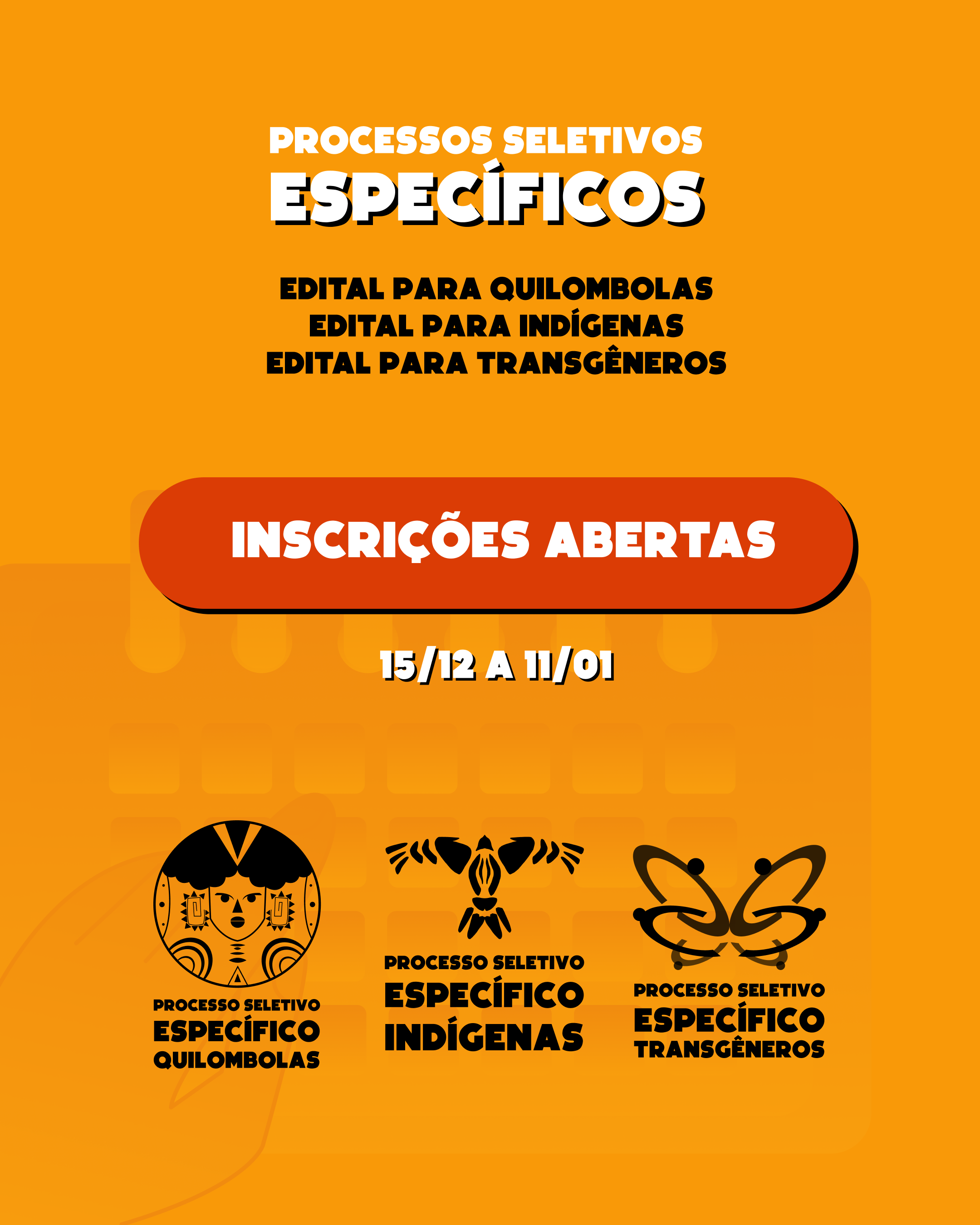 A Comissão Permanente do Processo Seletivo (Coperse) da Universidade Federal do Rio Grande (FURG) recebe até 11 de janeiro inscrições para os processos seletivos específicos voltados a estudantes quilombolas, indígenas e transgêneros. O ingresso está previsto para o primeiro semestre de 2026.