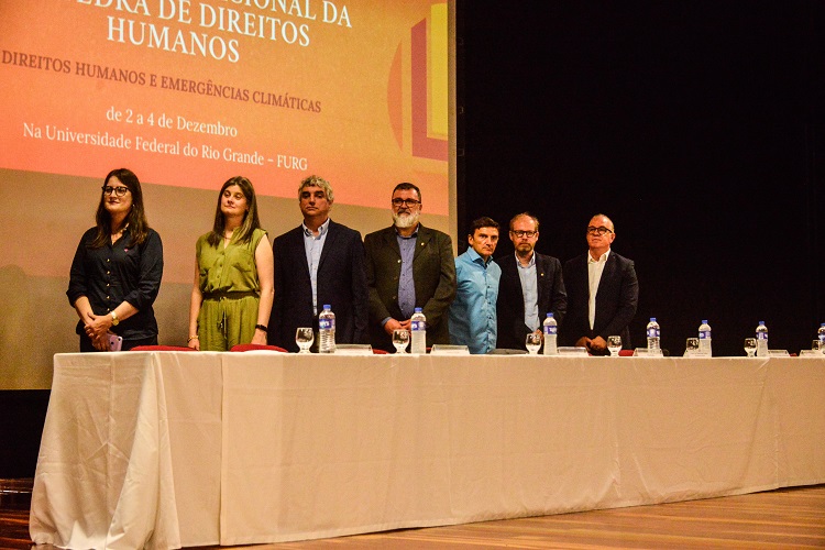 “Não é por nada que esse evento está acontecendo aqui, em Rio Grande. Existiu todo um conjunto de acontecimentos que levaram a FURG a participar de forma intensa em questões relacionadas aos direitos humanos quando impactados pelas mudanças climáticas que o nosso planeta vem enfrentando nas últimas décadas. Durante a enchente de 2024, a FURG, em especial este espaço em que estamos agora, foi um grande e importante centro de triagem e abrigo de pessoas. Realizar um evento sobre direitos humanos, que evoca o debate sobre as vulnerabilidades sociais, e sobre emergências climáticas, nesta instituição, tem um significado muito especial para nós”, relatou o coordenador.