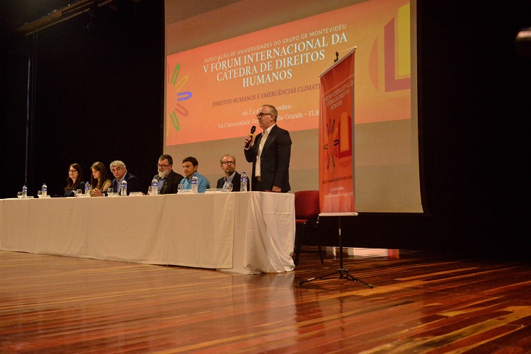 Com o tema “Direitos Humanos e Emergências Climáticas”, nesta última terça-feira, 2, o Cidec-sul foi o palco da mesa de abertura do 5º Fórum Internacional de Direitos Humanos da Cátedra de Direitos Humanos da Associação de Universidades Grupo Montevideu (AUGM). O evento reúne pesquisadores, professores e estudantes de diversos países da América Latina com o objetivo de proporcionar reflexões acerca dos desafios contemporâneos impostos pela crise ambiental global.