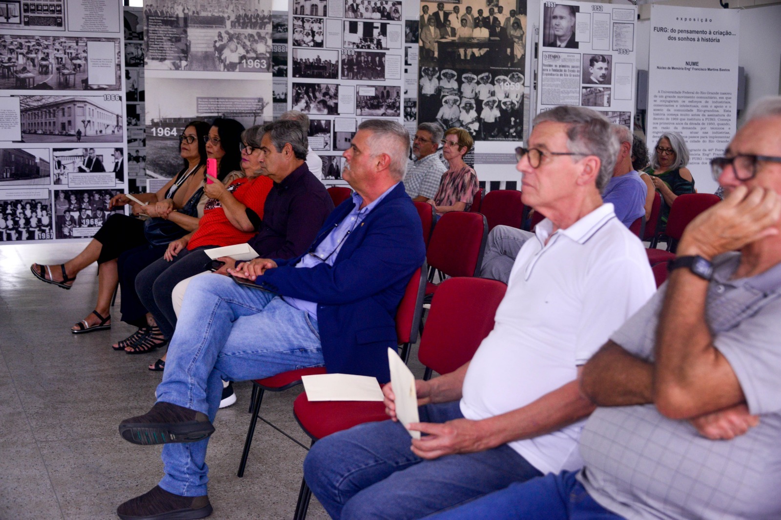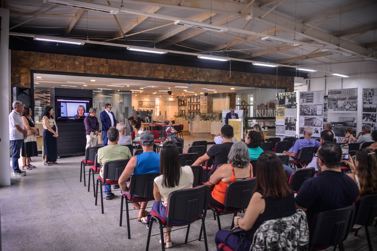 Em 2023 a FURG institucionalizou e formalizou uma ação de acolhimento aos novos servidores da instituição, com a cerimônia de posse. A ação é realizada no Nume, uma vez que entende aquele espaço como um local representativo da história da Universidade. Diante disso, o Comitê Gestor do Nume elaborou um projeto que contemplasse o agradecimento institucional aos aposentados, pois assim como boas-vindas, entendeu-se como necessário transmitir a gratidão da instituição pelas contribuições e tempo dedicado à Universidade.