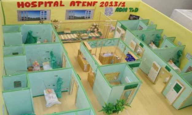 A turma da 7ª Série do Curso de Enfermagem da FURG construiu maquetes de diferentes setores hospitalares. Esse trabalho foi coordenado pela professora Helena Vaghetti, na disciplina de Enfermagem na Administração Hospitalar. Os trabalhos estão expostos nas dependências da Escola de Enfermagem (EEnf) para apreciação.