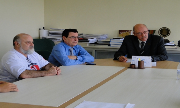 O reitor da Universidade Federal do Rio Grande - FURG, João Carlos Brahm Cousin acompanhado do vice-reitor, Ernesto Luiz Casares Pinto recebeu na tarde de hoje o comando de greve dos professores da FURG. Durante o encontro o reitor acolheu as reivindicações dos professores em relação à pauta nacional e está encaminhando para serem apreciadas em reunião extraordinária do Conselho Universitário Consun.