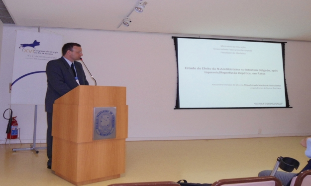 O professor mestre, cirurgião torácico Miguel Jr, e a técnica em Anatomia, doutora Angela Potter de Castro, ambos da Faculdade de Medicina (Famed), atuantes em pesquisa no Laboratório de Morfologia Experimental, participaram do XXVII Fórum de Pesquisa em Cirurgia do XVI Congresso de Cirurgia, na cidade do Rio de Janeiro (RJ), de 18 a 21 de setembro, com a apresentação de trabalhos. Durante o Fórum, promovido pelo Colégio Brasileiro de Cirurgiões (CBC), foram laureados com os seguintes prêmios, inéditos para a FURG: