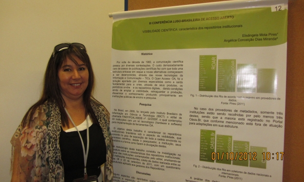 - VISIBILIDADE CIENTÍFICA: característica dos repositórios institucionais, por Elisangela Mota Pires, Angélica Conceição Dias Miranda. Resumo: http://www.acessoaberto.pt/c/index.php/confoa2012/confoa2012/paper/view/298