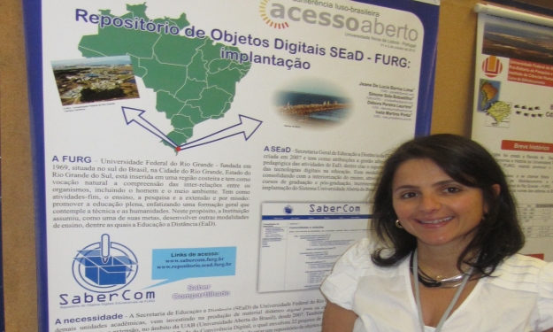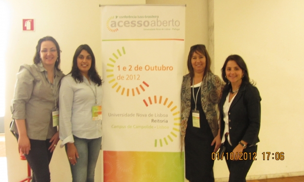 A Universidade Federal do Rio Grande FURG participa da 3ª Conferência Luso-Brasileira de Acesso Aberto (Confoa), em Portugal. O evento é organizado pela Universidade do Minho e realizado nos dias 1 e 2 de outubro na Reitoria da Universidade Nova de Lisboa. Quatro trabalhos estão sendo apresentados pelas alunas do terceiro ano de graduação do Curso de Biblioteconomia, Bruna Vieira e Sabrina Andrade; pela mestranda Jeane De Lucia Barros Lima, do Programa de Pós-Graduação em Educação em Ciências - PPGEC e componente da Equipe Multidisciplinar da Secretaria de Educação a Distância - SEaD; pela professora do curso de Biblioteconomia e colaboradora do PPGEC, Angélica Miranda; e pela bibliotecária egressa do curso de Biblioteconomia, Elisangela Mota Pires.