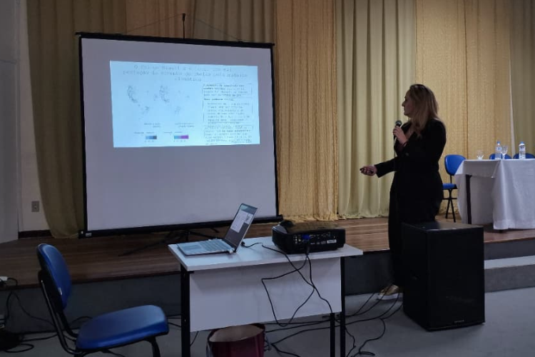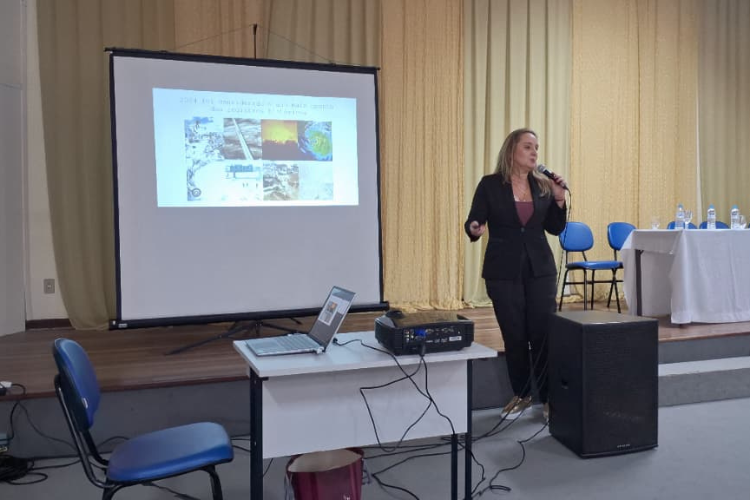 Durante sua apresentação, a docente apresentou um panorama técnico e científico sobre os impactos das mudanças climáticas no do Rio Grande do Sul, a partir de dados e registros levantados durante as enchentes de maio de 2024. Elisa destacou o trabalho conjunto desenvolvido pela FURG e pela UFPel naquele período, quando o estado enfrentou um dos maiores desastres climáticos de sua história recente.