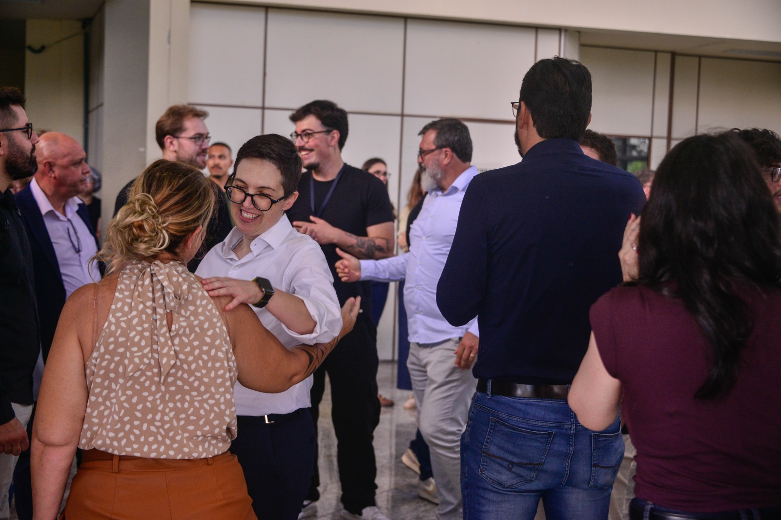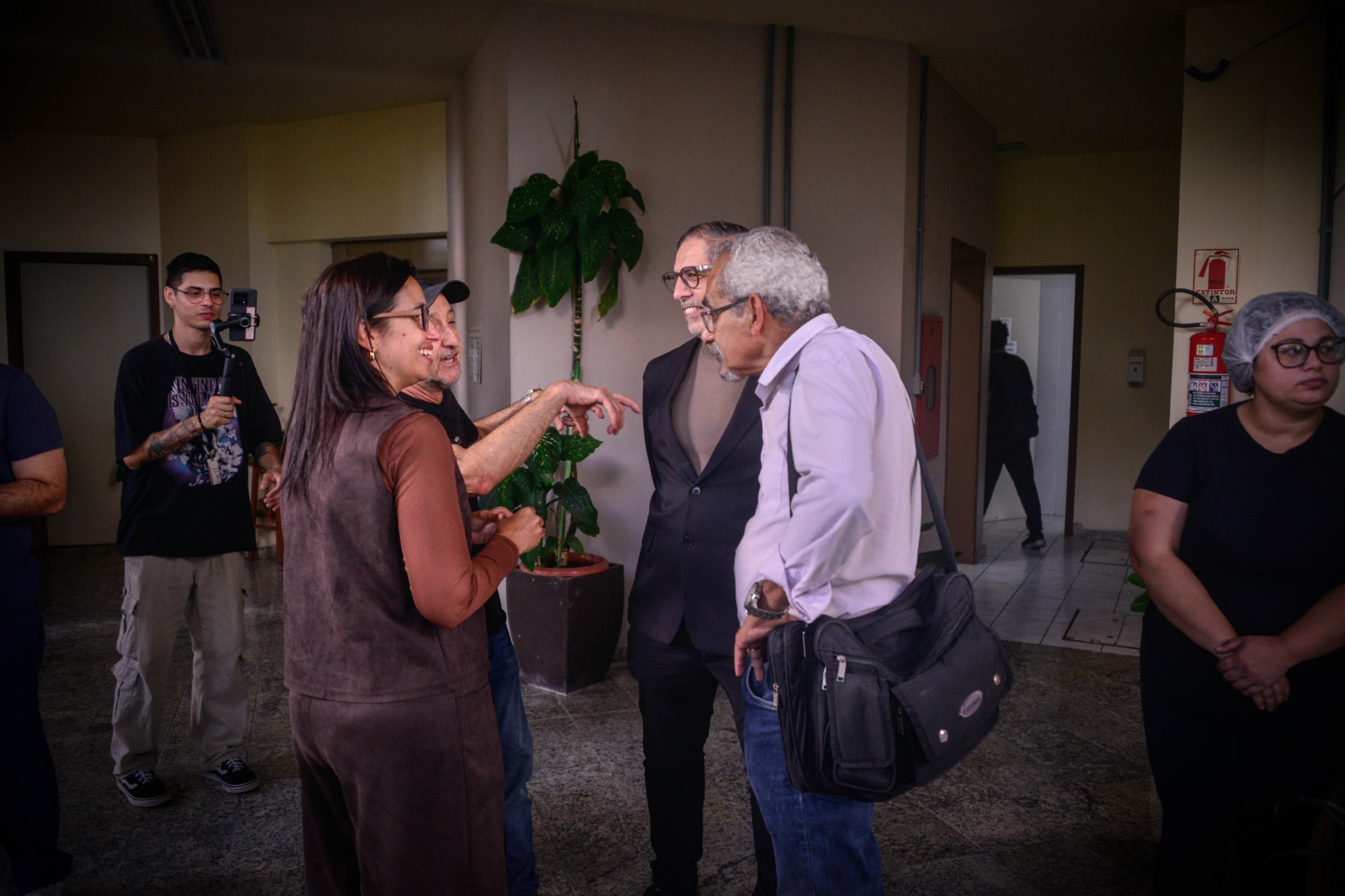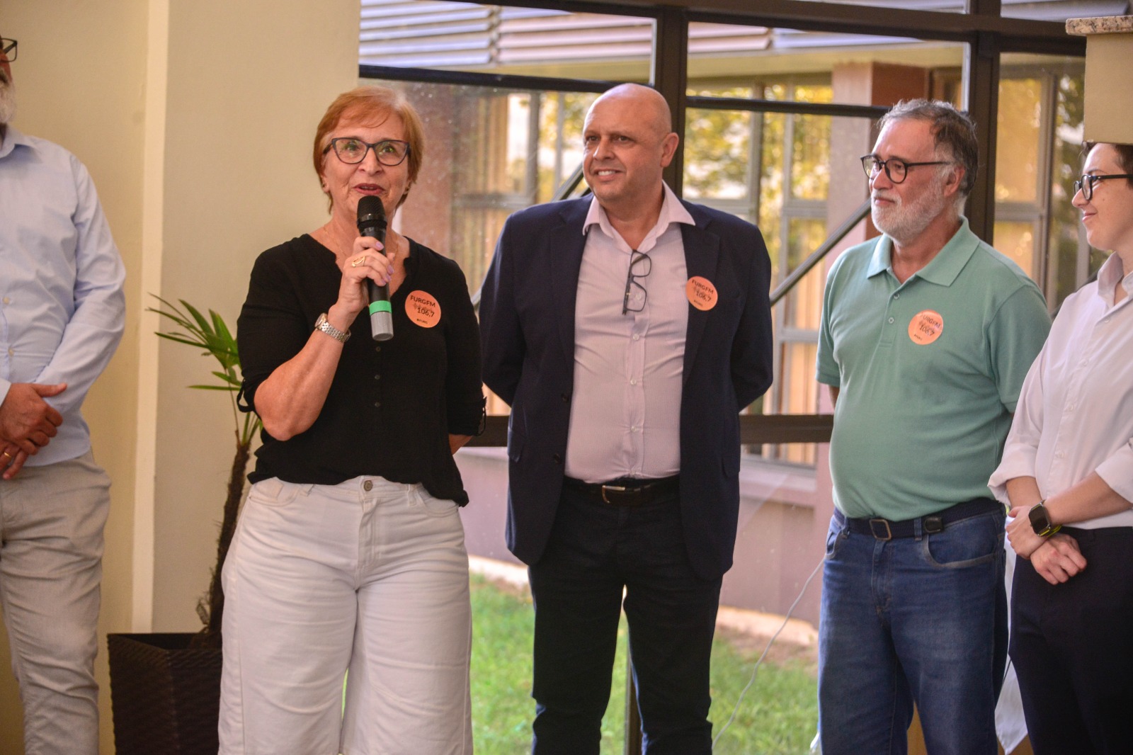 “Isso tudo não seria possível se os nossos servidores da Secom não abraçassem a proposta e buscassem encontrar todas as alternativas possíveis para que a rádio voltasse ao ar. Eles estão há mais de um mês gravando vinhetas, montando playlists, pensando programas e, hoje, tive a honra e a alegria de participar do primeiro episódio do FM Café desta nova fase. Esse é um programa que está marcado na história das gerações dessa Universidade”, discursou a reitora.
