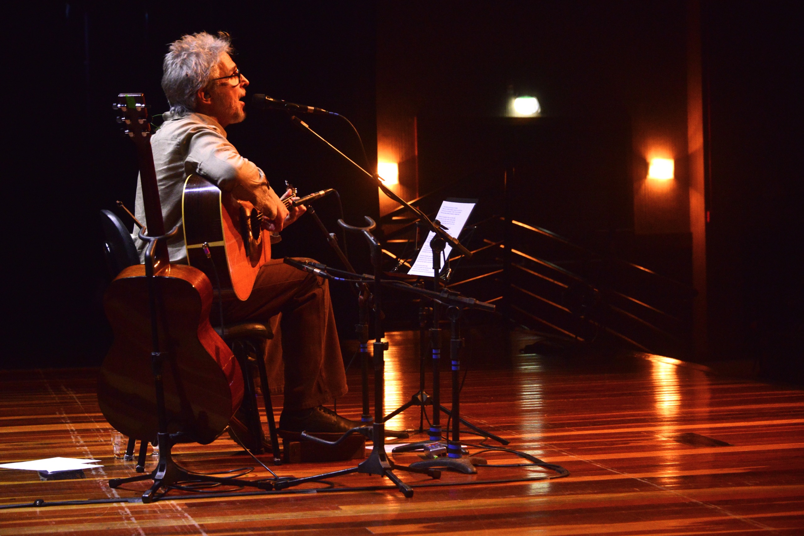 Autor de canções marcantes como ‘Estrela, Estrela’, da melancólica e intimista ‘Ramilonga’ e do marco conceitual ‘Estética do Frio’, Vitor Ramil subiu ao palco do Cidec-sul na noite desta última segunda-feira, 1, com elegância habitual, revisitando momentos que moldaram sua trajetória ao longo dos anos. A atividade fez parte da programação de abertura do V Fórum Internacional de Direitos Humanos – Cátedra de Direitos Humanos da Associação de Universidades Grupo Montevidéu (AUGM), que acontece de 2 a 4 de dezembro, no mesmo auditório.