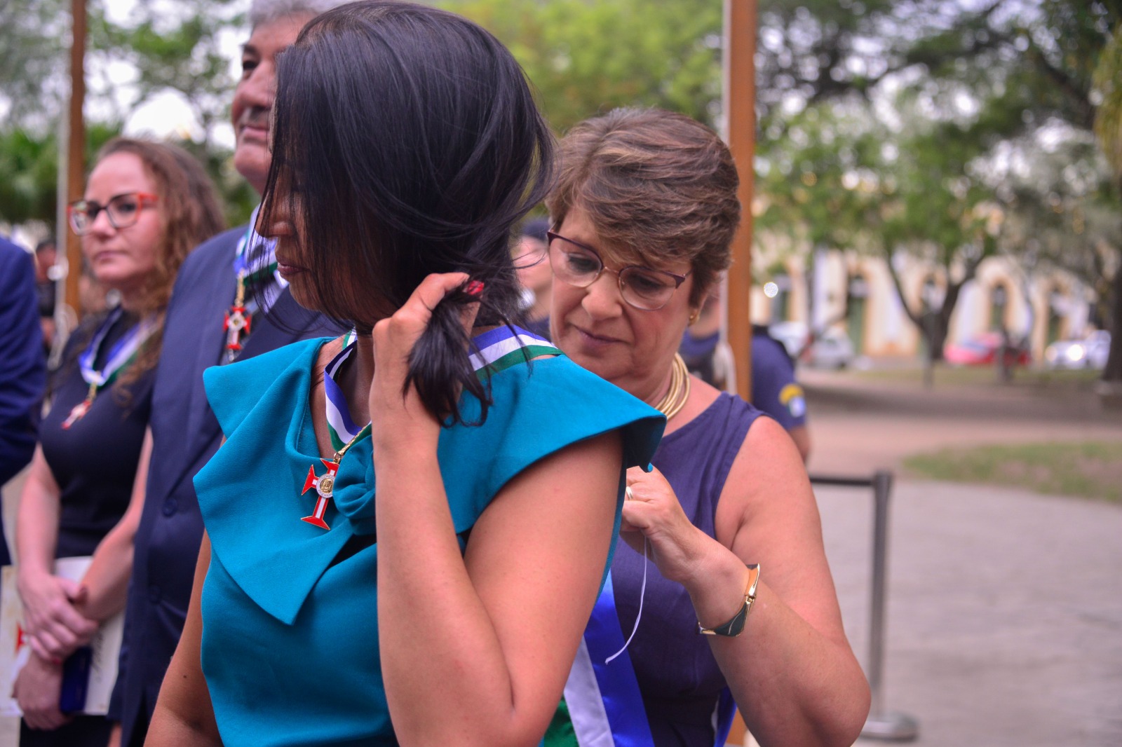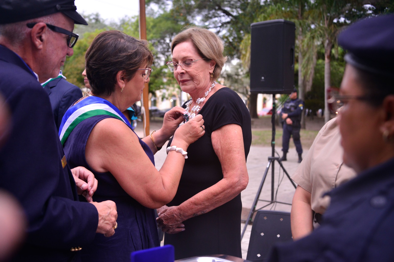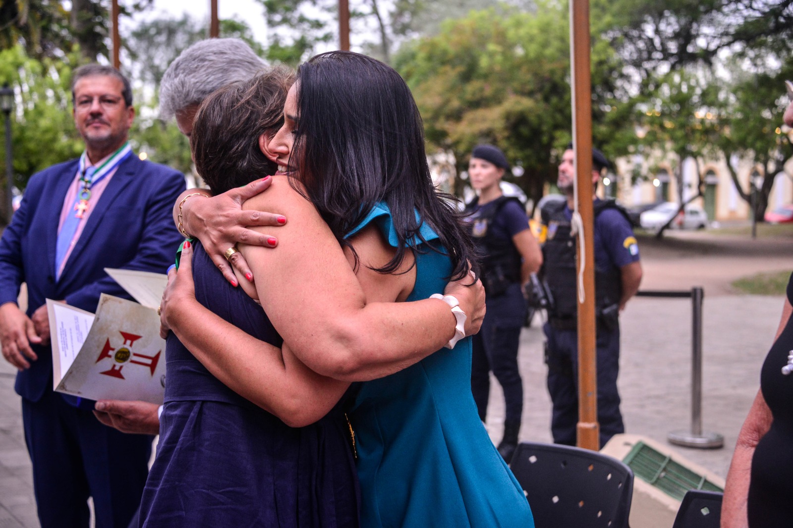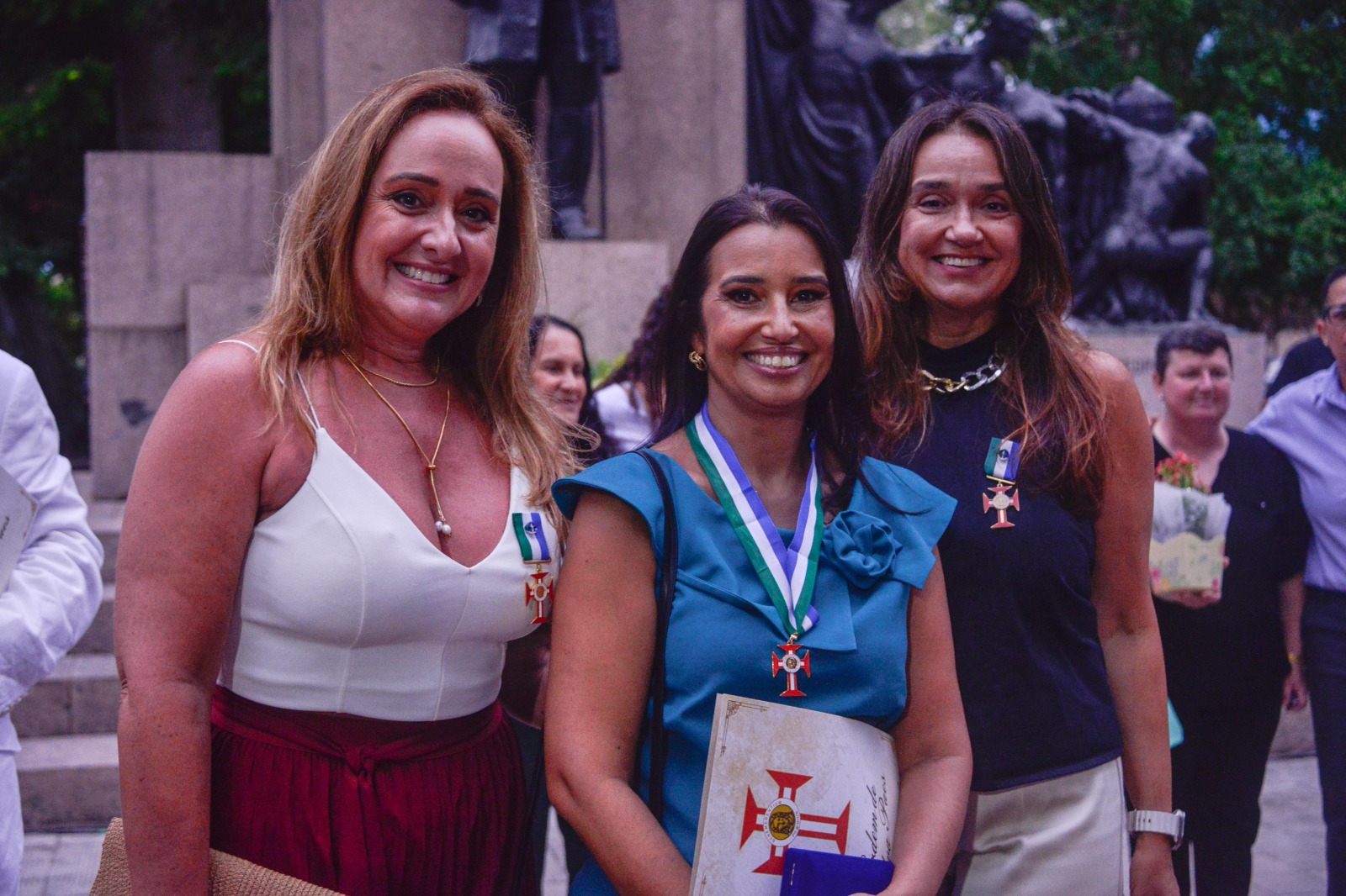 No grau de Oficial, também receberam a honraria a soldado da Brigada Militar, atual coordenadora da Patrulha Maria da Penha de Rio Grande, Giovana Duarte Musseli; e o comandante da Capitania dos Portos, Gutemberg da Silva Ferreira.