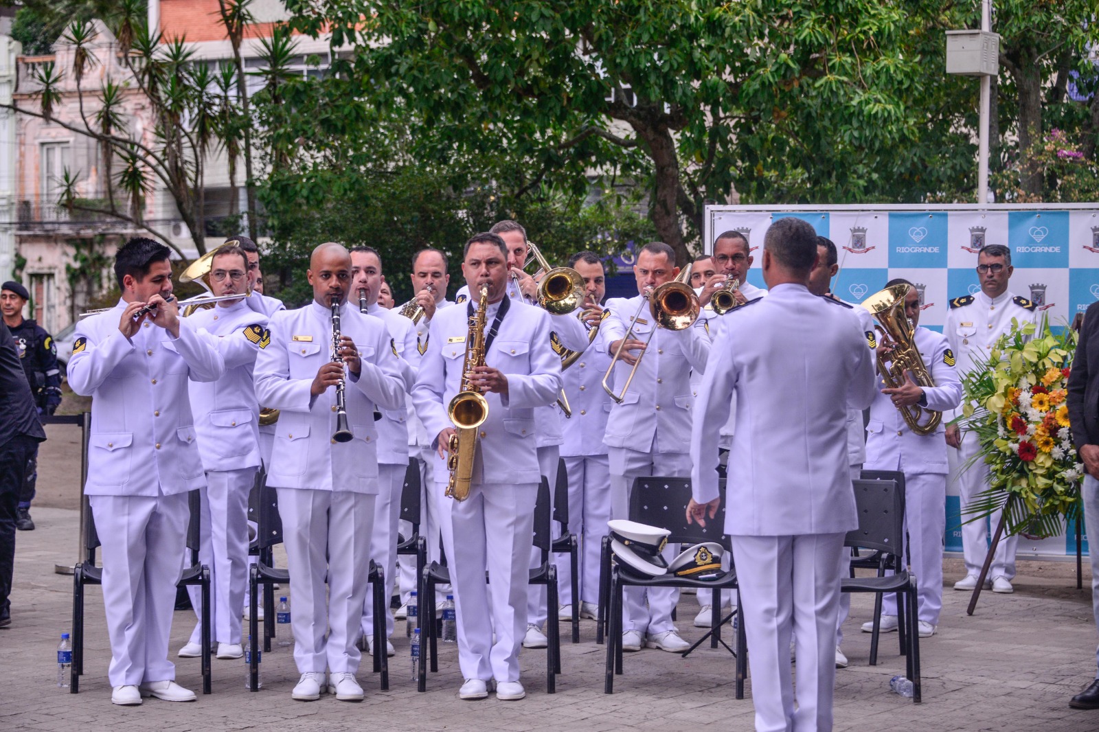 Realizado em frente ao monumento ao fundador do Rio Grande, o brigadeiro José da Silva Paes, na Praça Xavier Ferreira, o ato especial de aniversário da cidade contou com a presença de diversas autoridades civis e militares, como o deputado federal Alexandre Lindenmeyer; o deputado estadual Halley Lino de Souza; o comandante do 5º Distrito Naval, Vice-Almirante José Achilles Abreu Jorge Teixeira; o presidente da Câmara Municipal, Rogério Gomes; além do vice-reitor da FURG, Ednei Primel, acompanhado pela equipe de pró-reitores da Universidade.