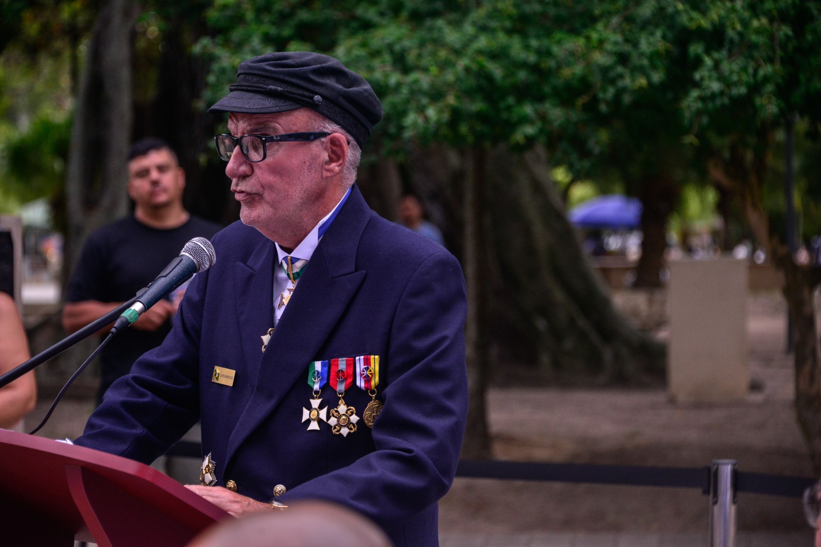 Em sua fala, Barcellos recordou um pouco do passado histórico da cidade. “Ao olharmos para trás, relembramos do Brigadeiro Silva Paes, que mais do que um militar nascido em Lisboa, foi um nobre engenheiro com notável capacidade técnica e imaginação. Foi ele o grande estrategista e estruturador do Brasil meridional; foi ele quem pensou nas nossas fronteiras austrais, nas fronteiras ao sul, na expansão do que era o Brasil; foi ele a pessoa que chegou aqui e entendeu que tudo isso aqui precisava de uma garantia, precisava de segurança. E foi este grande homem que conseguiu mobilizar todas as forças possíveis naquela época, já em 1730, quando estávamos preparando já a ocupação do sul do Brasil, culminando em 1737 com a fundação da nossa cidade”, contou o chanceler da Ordem.
