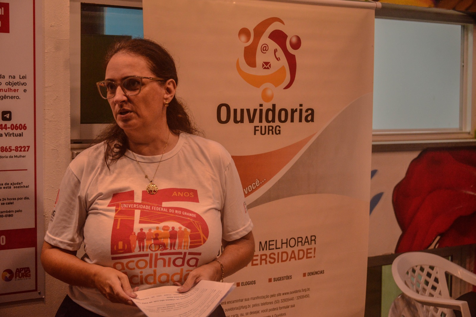 A secretária de Integridade, Transparência e Controle Social, durante a sua fala, comentou sobre o trabalho da Ouvidoria da Universidade, que, aliada ao banco, se constitui como mais um espaço institucional para que as mulheres que sofreram ou estão sofrendo algum tipo de violência dentro da instituição possam fazer as suas denúncias. “A Ouvidoria é um mecanismo dentro da Universidade que serve não só para formalizar o registro de uma denúncia e fazer os devidos encaminhamentos, mas também de acolhimento e de orientação, para que seja possível contribuir para coibir cada vez mais esse tipo de conduta inadmissível”, apontou Karina.