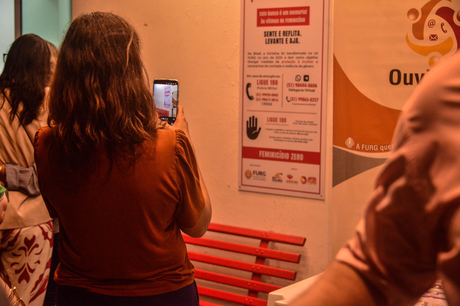 Para a secretária de Ações Afirmativas, Inclusão e Diversidades, a iniciativa de instalar placas informativas junto aos bancos vermelhos busca facilitar o acesso de mulheres à rede de apoio em situações de violência. Em sua fala durante a inauguração, ela destacou que, mesmo que existam espaços de acolhimento disponíveis, muitas vezes é difícil identificar para onde recorrer, especialmente em momentos de ansiedade ou sofrimento. “Quando começamos a projetar essa placa, eu estava na minha sala, em uma situação de tranquilidade, buscando os números de referência para denúncias e apoio, tive uma certa dificuldade em encontrar essas informações. Agora a gente faz o exercício de imaginar como é para uma mulher que está no contexto de violência buscar esses dados”, comentou Ana.