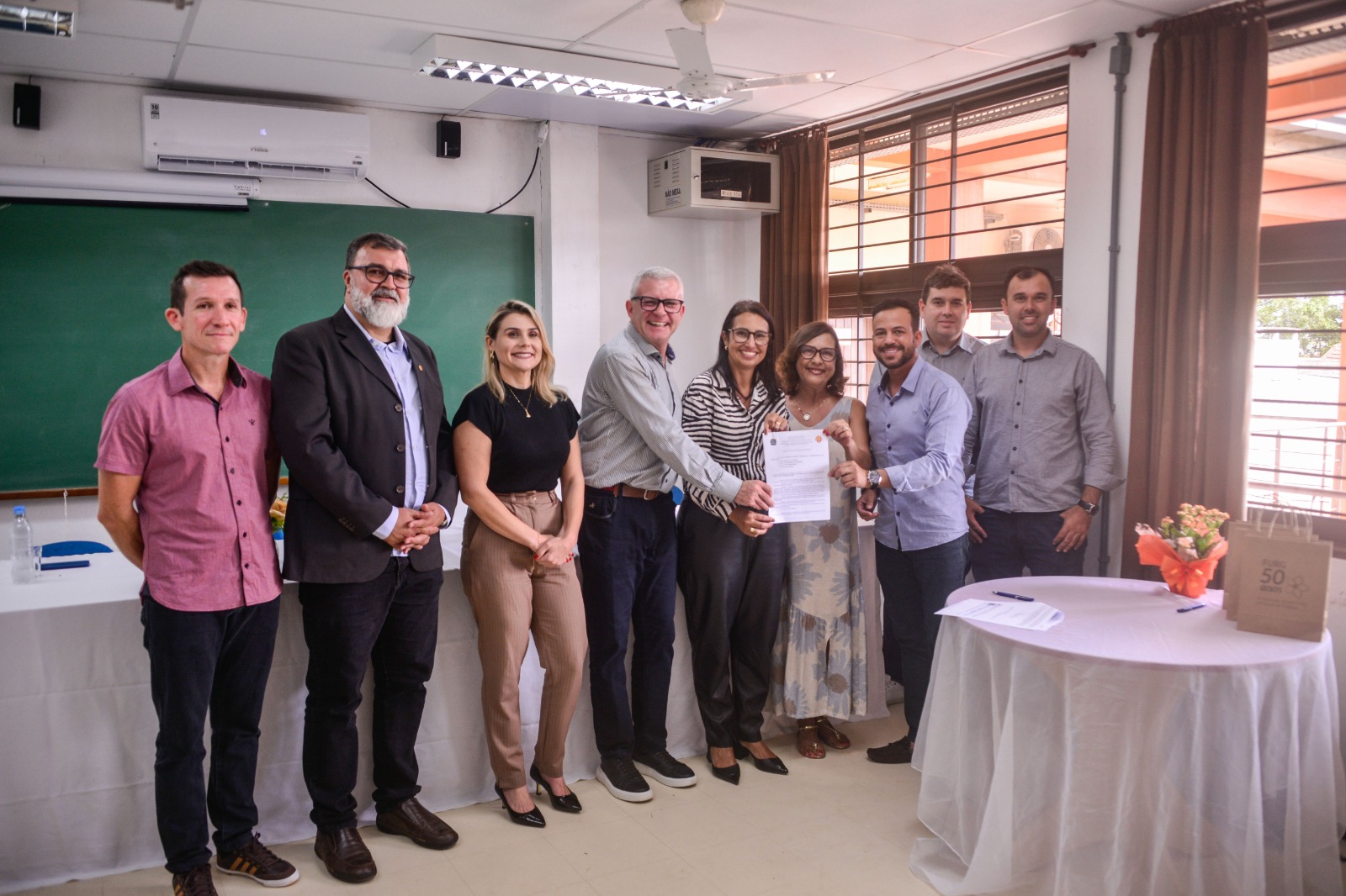 Durante o ato, também foi realizada a assinatura do termo de início das obras do Restaurante Universitário em São Lourenço do Sul, uma importante demanda acadêmica do campus.