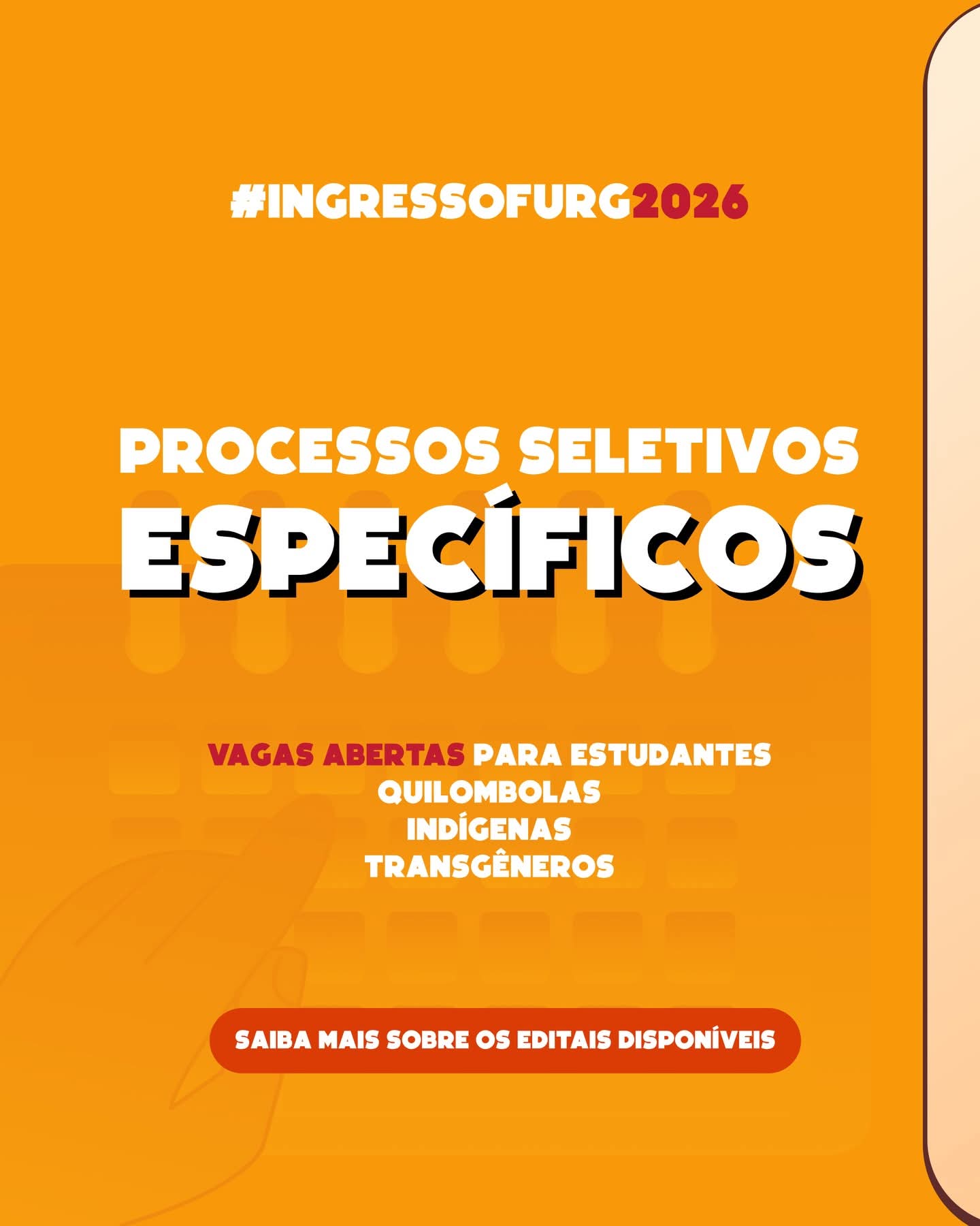 A Universidade Federal do Rio Grande (FURG) divulga os editais dos processos seletivos específicos para estudantes quilombolas, indígenas e transgêneros para ingresso em 2026/1. As informações estão disponíveis desde a terça-feira, 25, no site da Comissão Permanente do Processo Seletivo (Coperse/FURG).