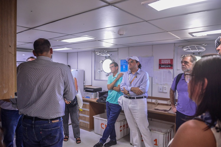 Na tarde daquele mesmo dia, autoridades convidadas evento puderam participar de uma saída da embarcação Ciências do Mar I, laboratório flutuante que a FURG coordena junto ao MEC e que tem como objetivo auxiliar na formação de oceanólogos da região sul do país. Confira algumas fotos a seguir.