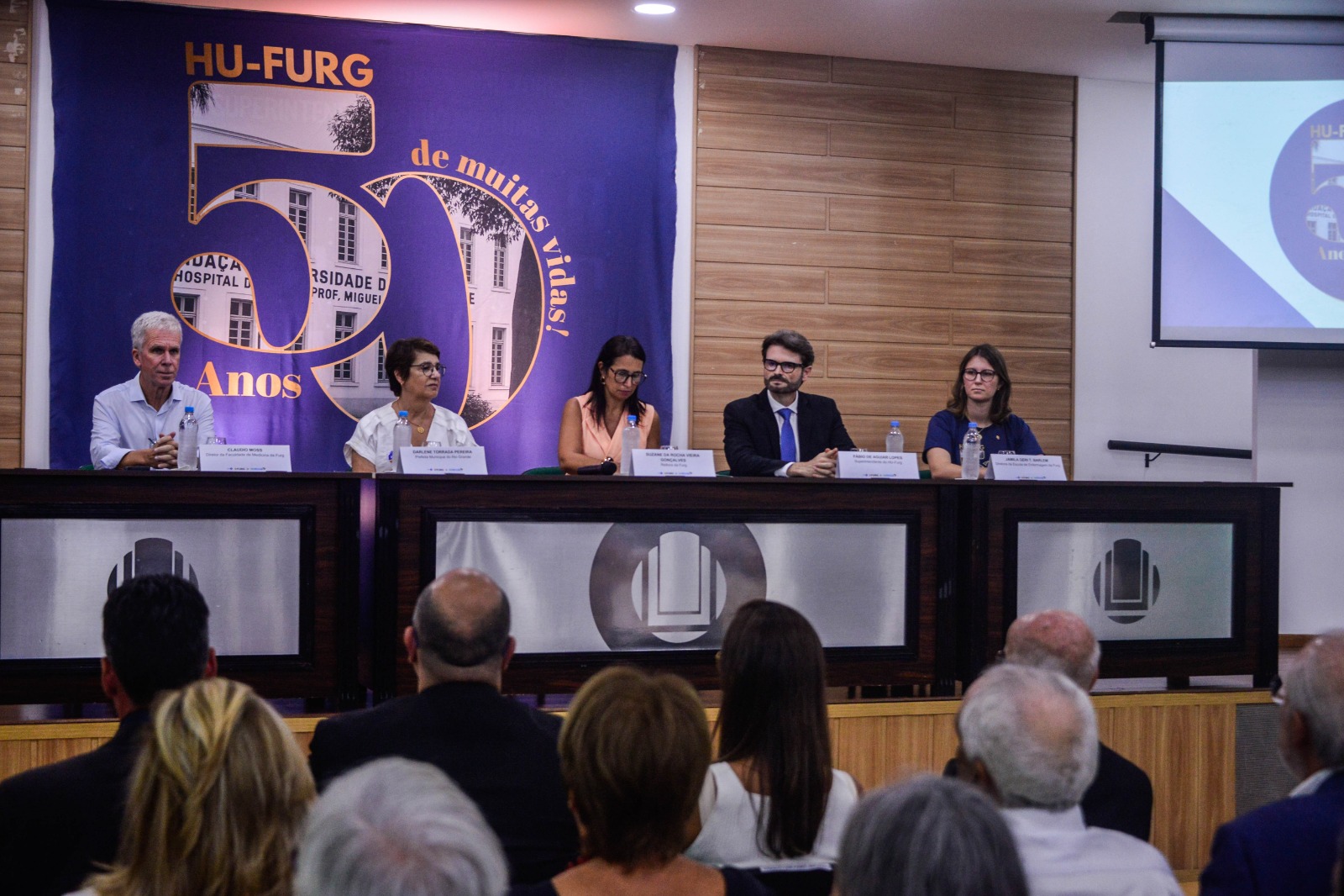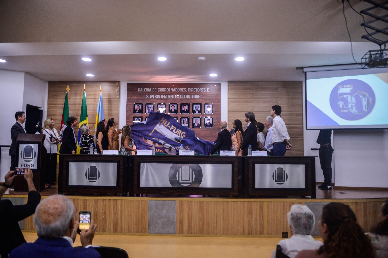 Nesta última sexta-feira, 27, o Hospital Universitário Dr. Miguel Riet Corrêa Jr. (HU-FURG), comemorou seus 50 anos de atuação com uma cerimônia que reuniu autoridades da Universidade, profissionais da saúde, estudantes e membros da comunidade. O evento aconteceu no anfiteatro da Unidade Saúde, em Rio Grande, e contou com homenagens aos profissionais que fizeram parte da história do hospital, assim como a inauguração da galeria de diretores.