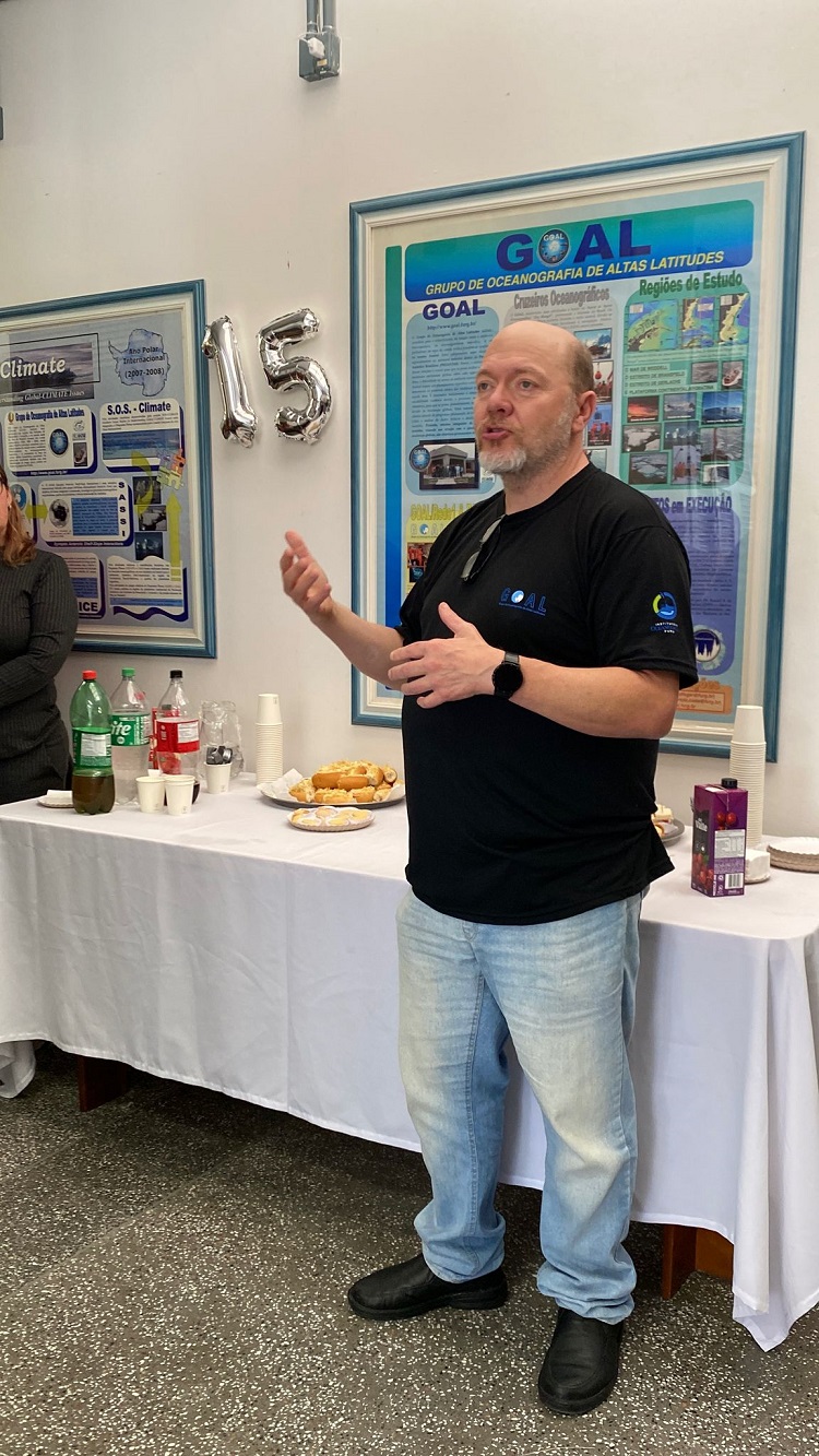 O aniversário do Leoc foi celebrado com uma comemoração realizada na última quinta-feira, 30 de outubro. Sobre a importante data, o coordenador e um dos fundadores do Leoc, professor Mauricio Magalhães Mata, lembrou que antes da FURG formar as unidades acadêmicas atuais, a Universidade tinha uma estrutura departamentalizada e a Oceanografia era dividida em diversos departamentos. " Aqui na base, ficava o pessoal da Biológica e nós, da Física, ficávamos lá no Departamento de Física. Então, quando o Instituto de Oceanografia (IO) começou a se formar, foi justamente no momento quando a gente estava aprovando grandes projetos ligados à Antártica. Num desses projetos, a gente solicitou diretamente à Universidade de Ciência e Tecnologia, na época, o financiamento para ter um teto para esse projeto e a gente conseguiu. E foi interessante, porque a obra começou concomitante à formação do Instituto de Oceanografia, em 2009, sendo um marco para agente, porque foi quando esses grupos que estavam em diferentes departamentos se agruparam aqui no IO e juntos criamos uma nova linha, que é essa parte de oceanos e clima", destacou Maurício Matta. Ele enfatizou que foi obtido um financiamento muito relevante para a pesquisa na Antártica e, associado a uma nova infraestrutura, o grupo se desenvolveu muito e se ramificou, formando o Simcosta e os grupos ligados à parte de carbono. "A gente seguiu com uma linha mestra de pesquisas em áreas oceânicas, que é, relativamente, não é muito abrangente no Brasil", afirmou.