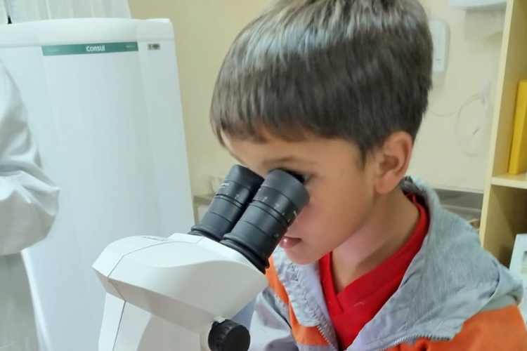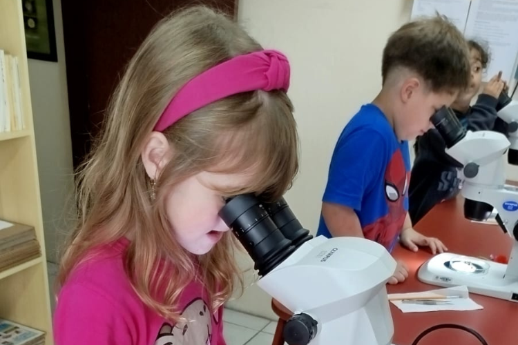 Em seguida, o grupo visitou o Laboratório de Microscopia, onde cada criança utilizou uma lupa estereoscópica para observar de perto insetos e flores. Segundo Patrícia Lovatto, docente e coordenadora da atividade, “a experiência despertou encantamento e atenção, permitindo que os pequenos explorassem formas, cores e detalhes que tornam os insetos o grupo mais abundante do planeta”.