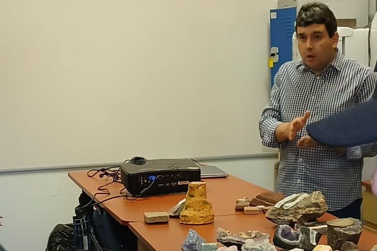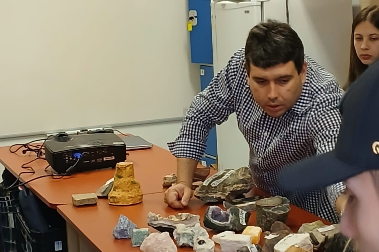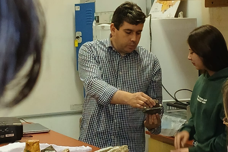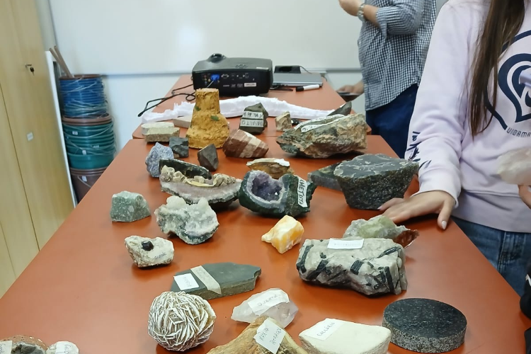 Durante a visita, os alunos conheceram os experimentos didáticos, maquetes e coleções de rochas e minerais disponíveis no laboratório, além de participarem de atividades relacionadas aos temas Geologia, Solos e Recursos Hídricos.