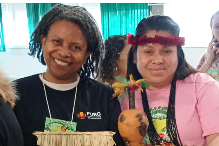 Deise ressalta que ser convidada pela organização para entrar no auditório junto com as outras mulheres, representando as mulheres quilombolas do Rio Grande do Sul e, ao mesmo tempo, sua trajetória como estudante da Licenciatura em Educação do Campo da FURG, foi um momento de grande significado. Além disso, ela descreveu a experiência como uma sensação de pertencimento, destacando a honra e o privilégio de representar a FURG e as mulheres negras quilombolas que lutam e resistem na preservação de seus territórios, saberes e vivências, muitas vezes invisibilizados pelo sistema.