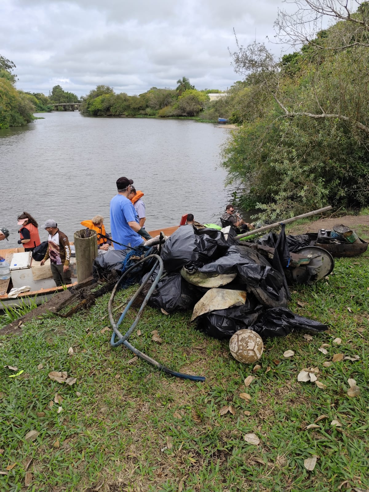 Ao longo do percurso, foram retirados 450 kg de resíduos sólidos do arroio e de suas margens. Entre os principais materiais recolhidos estavam garrafas PET, sacolas plásticas, pneus, redes de pesca, lonas, eletrodomésticos descartados, quadros de bicicleta, latas e embalagens de tinta e solvente. O volume, embora expressivo, representa uma redução em relação à edição anterior, quando mais de 800 kg foram retirados do mesmo trecho.