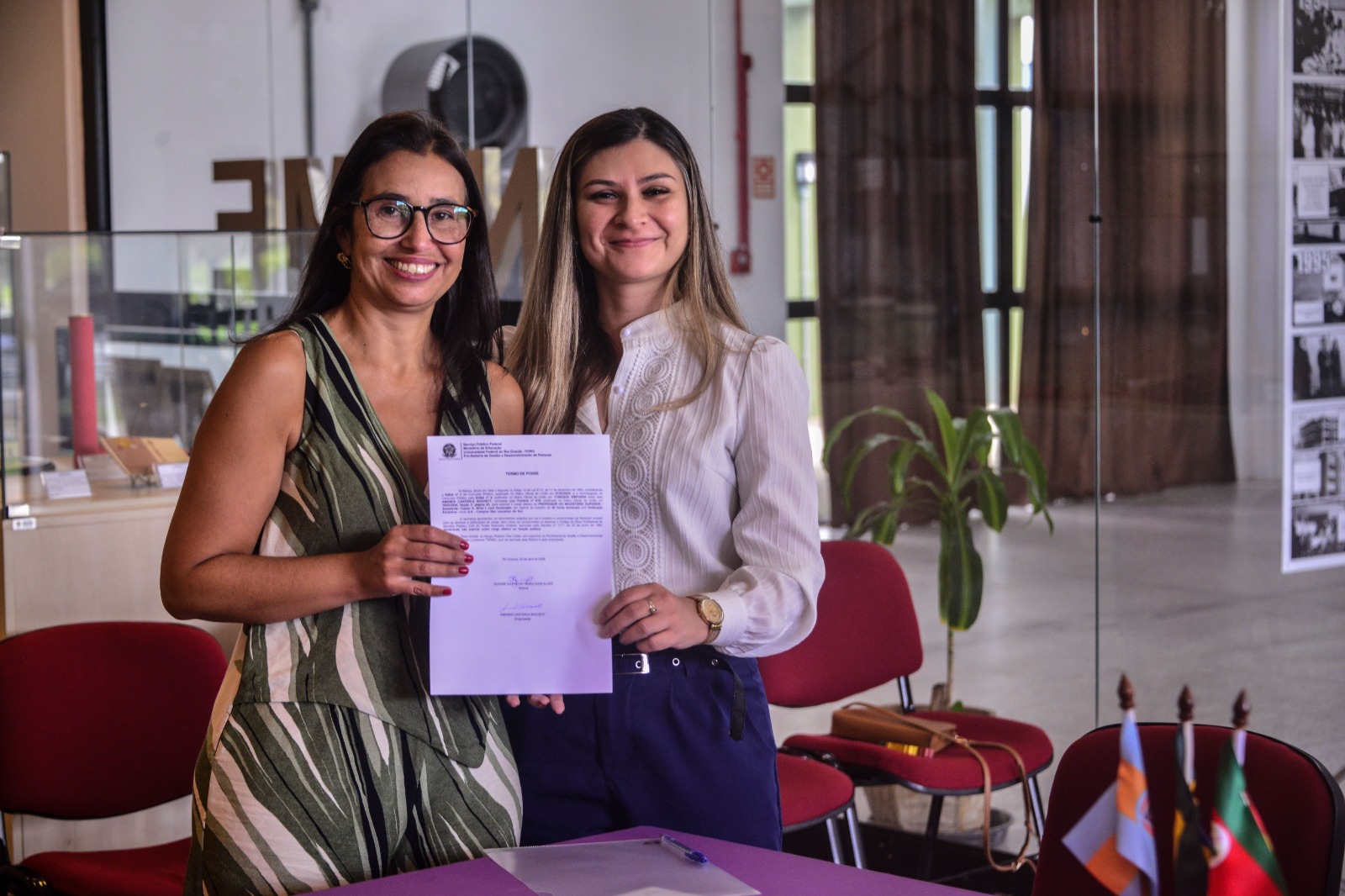 Nesta última quinta-feira, 2, foi realizada mais uma cerimônia de posse para novos servidores da FURG. A ação, que ganhou caráter institucional ao longo dos últimos anos, é o rito tradicional de recepção dos novos técnicos-administrativos em educação e professores da Universidade, acontecendo nas dependências do Núcleo de Memória Engenheiro Francisco Martins Bastos, o Nume.